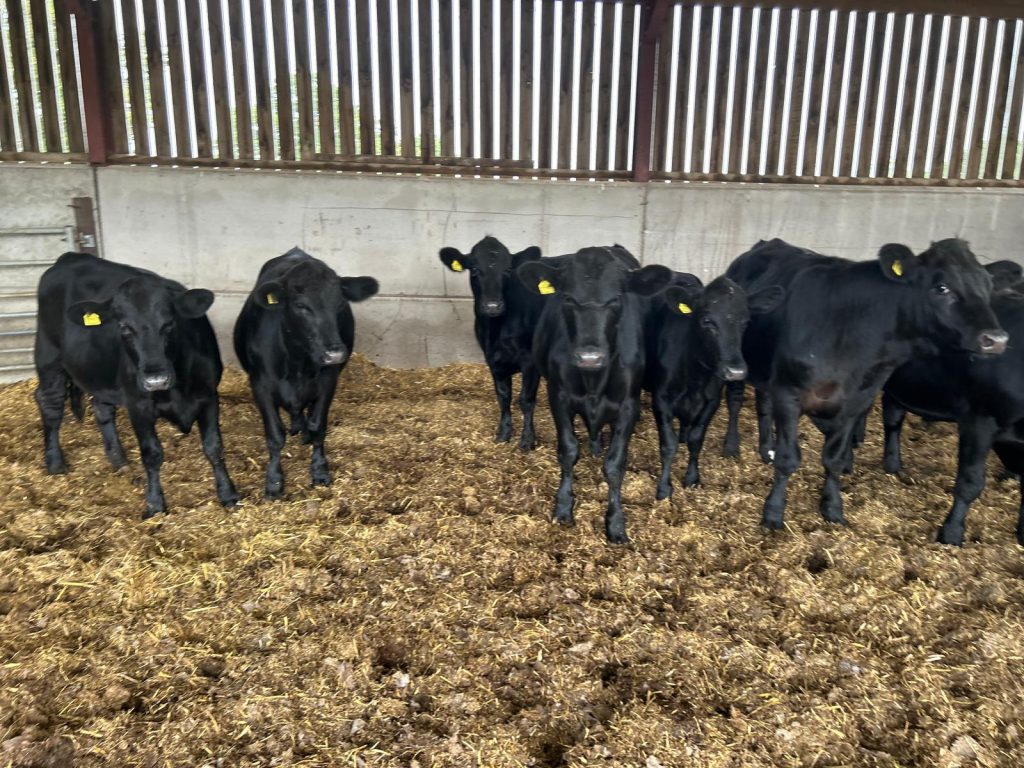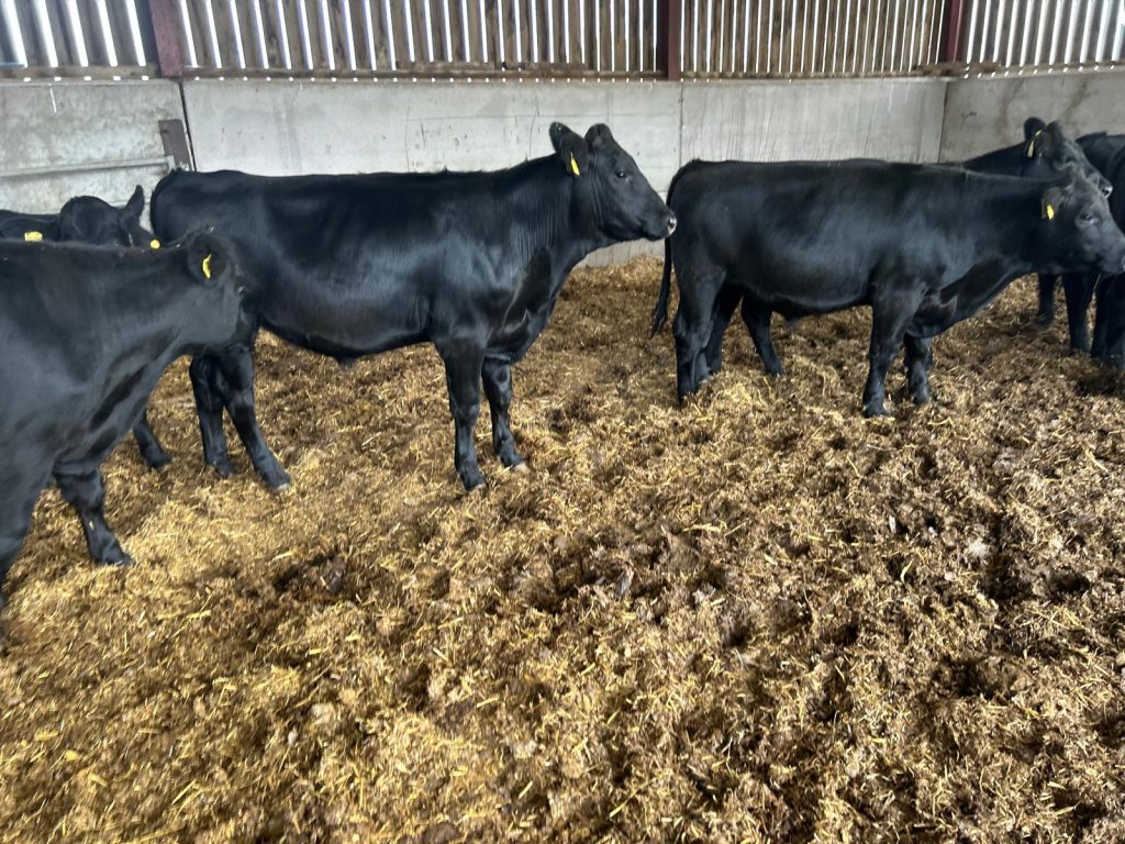 20 Aberdeen Angus store cattle out of big Holstein cows. 14 steers and 6 heifers average 400kg. All named sires